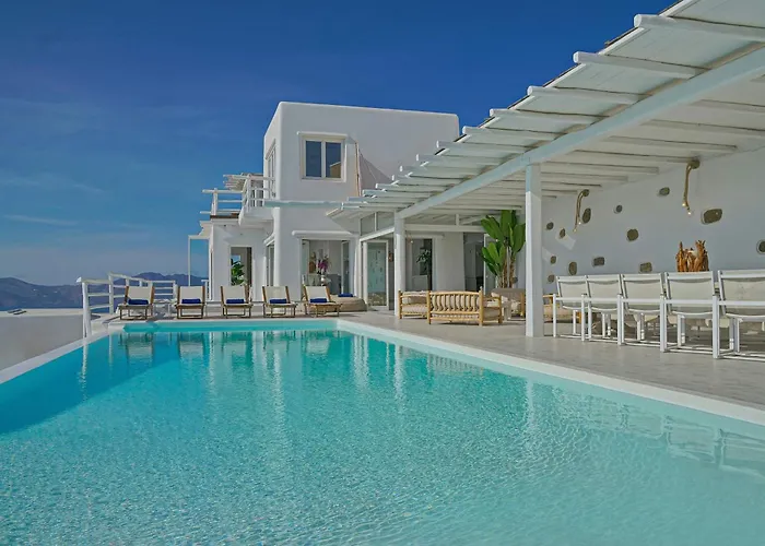 M11 - Aegean Villa - Luxury Mykonos Villa Mykonos Town med 8 sovrum, som ligger inom 5 minuter till fots från Windmills of Kato Mili, erbjuder gästerna en uteplats samt en pool. Villan med 8 badrum, som har utsikt över havet, bjuder in gästerna att besöka Ftelia strand, som ligger cirka 4 km bort.